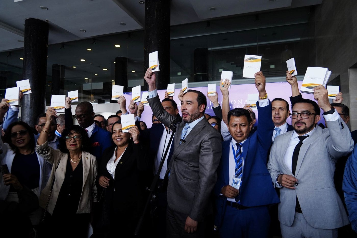 La reacción de las bancadas Acción Democrática Nacional (ADN) y Revolución Ciudadana (RC) fue distinta en el primer día de sesiones tras el referéndum y consulta popular del domingo 16 de noviembre. La bancada oficialista llegó, de a poco, a una rueda de prensa, mientras que la oposición se juntó e irrumpió los pasillos de la legislatura con gritos y alzando la Constitución.