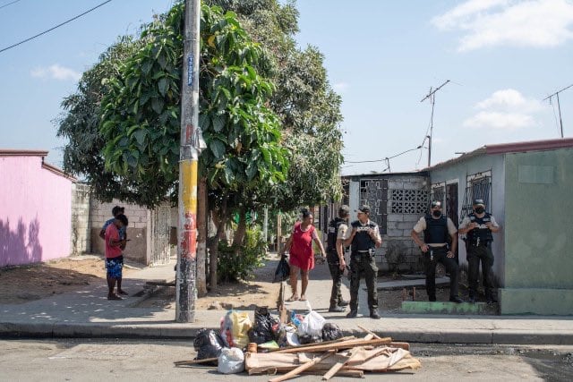 Uniformados de la Policía están desplegados en diferentes zonas del distrito Nueva Prosperina luego de los hechos violentos registrados en Socio Vivienda, La Casuarina y La Entrada de la 8 que dejaron 22 muertos y tres heridos.